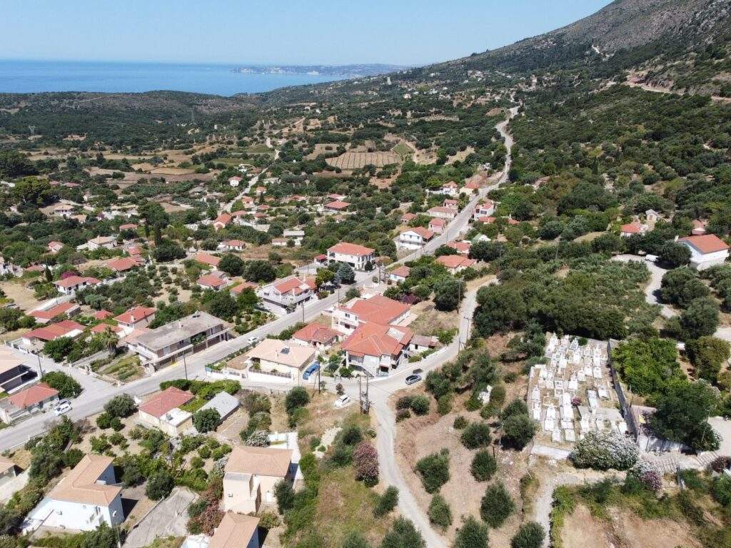 Located near Poros and Tzanata, Valeriano is a small, authentic village surrounded by fertile fields and gentle hills. Its elevated position offers panoramic views over Kefalonia’s southeast coast and the Ionian Sea. Nearby attractions include Mount Ainos National Park and the Drakaina Cave, while the beaches of Skala and Katelios are just a 15-minute drive away. Roughly 28 km from Kefalonia Airport, Valeriano is an ideal location for tranquil living or building a villa in a peaceful, scenic setting.