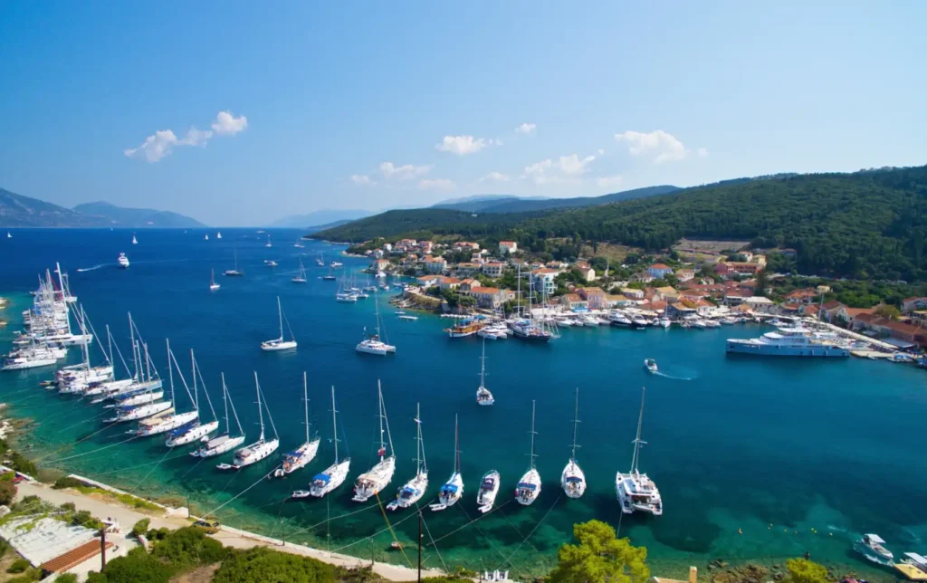 Fiskardo (The Cosmopolitan Gem): In the north, Fiskardo is the island’s “St. Tropez.” As the only village to survive the historic 1953 earthquake, it retains its stunning Venetian architecture. Its harbor is lined with high-end restaurants and boutiques, attracting a sophisticated international yachting crowd.